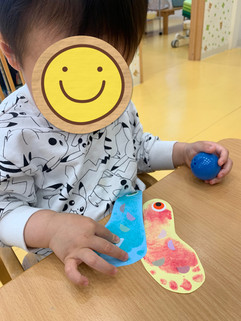 数日に分けて、足形とり・絵の具塗り・シール貼りをして『こいのぼり🎏』作りをしました☺器用にシールを両手で開いて貼る子や、初めてで指に引っ付くのにびっくりする子、「これなんだ??」と口にいれようとする子様々でした😄