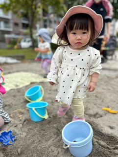 滑り台の上から砂場にいるお友達へ「やっほー!!」と声をかけるのがブームになっています♪