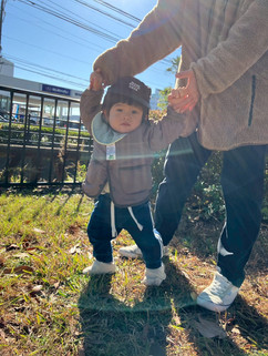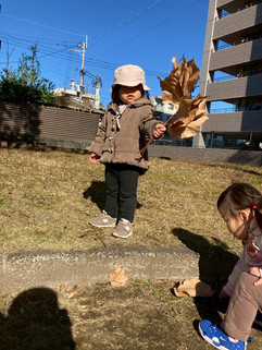 かけっこしたり大きな葉っぱを持ってたくさん走り回りましたよ😁