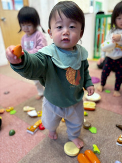 遊び方が上手になりお皿に料理を並べて食べる真似をしたりと楽しみました🍳