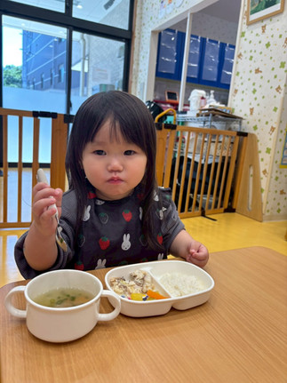 沢山遊んだ後の給食はおいしいね😊